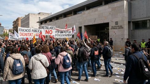 Durant les marxes per Girona es van sentir consignes com "Ja n'hi ha prou, apugeu-nos el sou!" i "Menys discursos i més recursos", en una jornada marcada per la pressió sindical per mantenir viu el pols amb el Departament.