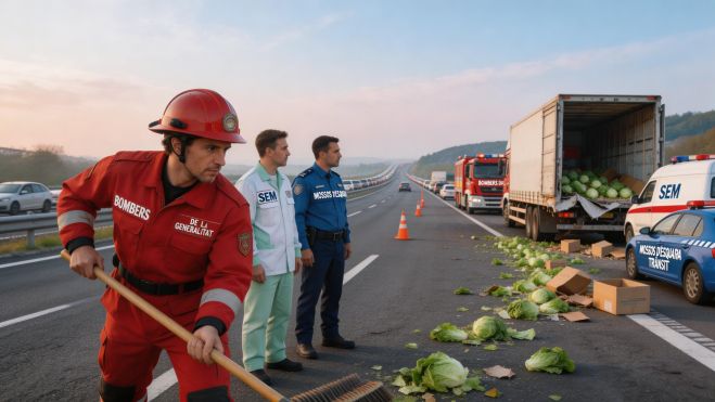 Al lloc han intervingut efectius dels Bombers de la Generalitat, del Sistema d"Emergències Mèdiques (SEM) i dels Mossos d"Esquadra de Trànsit. La fruita i verdura transportada, principalment enciams, ha quedat escampada sobre la calçada, ocupant un tram d'uns 200 metres.