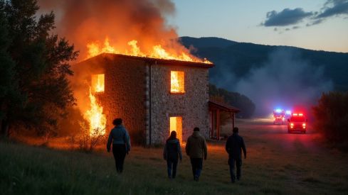 Quan van arribar els equips d'emergència, el foc ja havia arribat al menjador, que cremava completament. Les tres persones que es trobaven a l'interior van aconseguir sortir pel seu propi peu abans de l'arribada dels efectius. L'incendi es va originar a la xemeneia i es va propagar ràpidament per la planta baixa i els pisos superiors.
