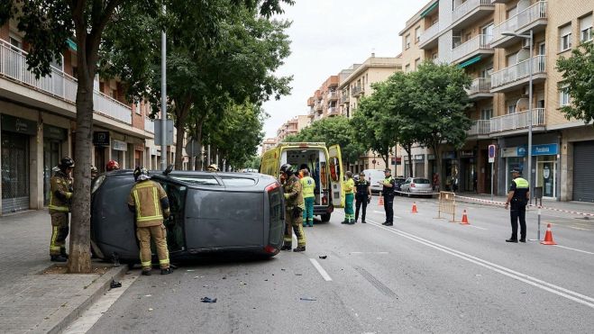 Una conductora ha resultat ferida lleu aquest divendres al migdia en un accident de trànsit registrat a la avinguda de Josep Tarradellas de Girona. En el sinistre s'hi han vist implicats dos vehicles i un d'ells ha acabat bolcat de costat després de xocar contra un arbre.