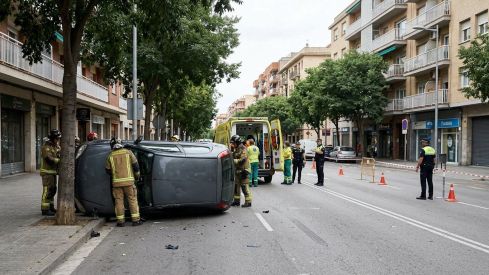 Un cotxe ha quedat bolcat després de la col·lisió