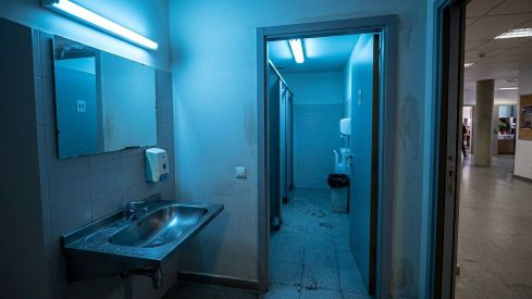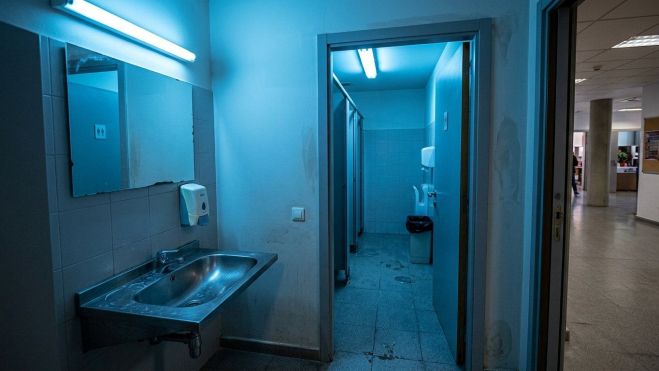 La Universitat de Lleida va canviar ahir la il·luminació d'un bany de la planta baixa del Rectorat i va substituir la llum blanca per fluorescents de color blau intens per desencoratjar el consum de drogues injectades en aquest espai.
