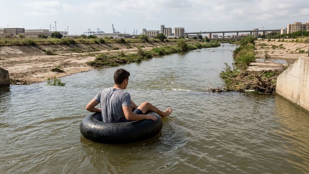 En aquest context, el jove va aprofitar la presència d'aigua a la llera per deixar-se emportar pel corrent pujat a un flotador negre amb aparença de roda. L'escena ha circulat després per xarxes socials, on ha cridat l'atenció precisament per produir-se en un punt on no és habitual veure córrer l'aigua amb aquesta continuïtat.
