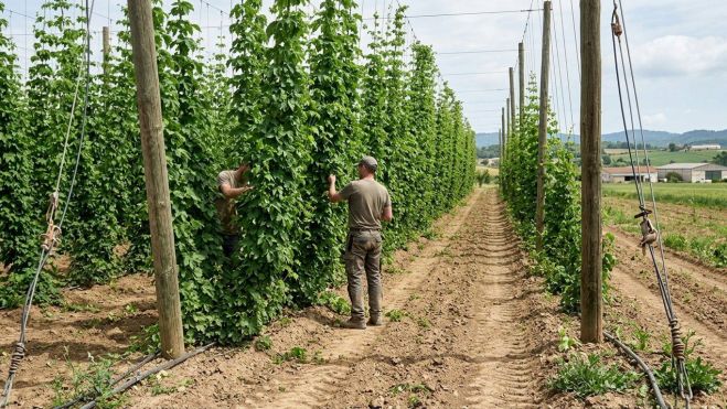 Albert Vilardell cultiva llúpol ecológico desde hace 13 años y ha convertido una primera prueba en un terreno familiar de Crespià en un proyecto que hoy se extiende también a Lliçà d"Amunt y Llagostera. Su apuesta forma parte de Biolupulus, una marca que agrupa a 12 productores de Cataluña y Castilla y León y cultiva 32 hectáreas con un objetivo común, producir un llúpol de proximidad y calidad con un manejo respetuoso con la tierra.