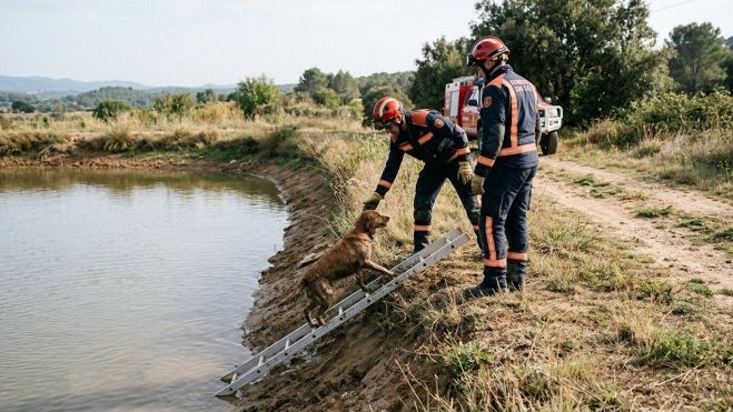 Los Bombers rescataron este sábado por la tarde a un perro que había quedado atrapado en el barro de una balsa de Sant Medir, en el término municipal de Sant Gregori, en la comarca del Gironès. El aviso llegó a las 15.47 horas y la intervención terminó sin daños para el animal.